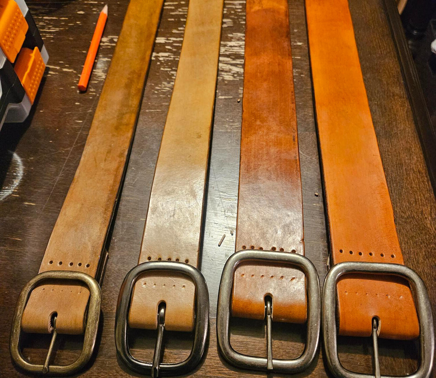 Preserving the Beauty: My best shot at a Guide to Caring for Leather ProductsLeather products have a timeless elegance and enduring quality, but like all things, they require proper care to maintain their beauty and longevity.Whether it's a cherished handbag, a beloved wallet, or a trusty pair of shoes, following a few simple steps can help preserve the integrity of your leather goods for years to come.1. Regular Cleaning: Regular cleaning is essential to prevent dirt and grime from settling into the pores of the leather. Use a soft, damp cloth to gently wipe away surface dust and dirt.But don't rub too hard! Gentle brushing or wiping. If it's a tougher stain, a mild leather cleaner or saddle soap can be used, followed by a clean, damp cloth to remove any residue.(We get no ad revenue or anything for me saying what I am about to say): the best stuff I found is Angelus Leather Balm. Always test on an inconspicuous spot though. It is a good cleaner and conditioner, in one go. Don't ever use it on suede, unless you want to change the color and character of it.Fiebings also makes a good line of cleaners. Saddle soap is good for cleaning, but generally won't condition the leather so well.Avoid harsh chemicals or abrasive cleaners, as they can damage the leather's finish.2. Conditioning: Just like your skin, leather benefits from moisturization to keep it supple and prevent drying out. Apply a quality leather conditioner using a soft cloth, working it into the leather in a circular motion.Allow the conditioner to penetrate the leather for a few minutes, then buff off any excess with a clean cloth or a soft brush (like the one for buffing shoes).Conditioning should be done periodically, depending on the frequency of use and the climate conditions in your area.3. Protection from Moisture: Leather is susceptible to water damage (but it is oddly tougher than you might think!).With that, it's important to protect your goods from too much moisture, or to clean them up after exposure. Avoid exposing them to too much rain, or a dunking in a lake or pool, or excessive humidity.But if your leather stuff does get wet, blot gently with a clean, dry cloth and allow to air dry away from direct heat sources (unless you are trying to permanently form it into shapes or dry it out and harden it, or you'd just like to experiment).For added protection, consider applying a water repellent spray designed specifically for leather.4. Storage: (Applies to very expensive items, cordovan leather, pricy shoes or other items.) Proper storage is part of maintaining the shape and condition of your leather products.Store them in a cool, dry place away from direct sunlight, as prolonged exposure to sunlight can cause fading and drying out. Use dust bags or pillowcases to protect them from dust and scratches, and avoid overcrowding them in your closet or storage space to prevent creasing or deformation.(If it's a saddle, well, have fun and ride it. If it's a belt, well, just use it and wear it out.)5. Handling with Care: (This section is up to you on how much care and handling you do with your leather goods. After all, it's yours.)Handle your leather products with care to avoid unnecessary wear and tear. Avoid overstuffing wallets or handbags, as this can stretch the leather and cause it to lose its shape over time.When not in use, stuff handbags with tissue paper to help them retain their shape, and avoid hanging them by their straps for prolonged periods, as this can cause them to stretch or deform.6. Professional Maintenance: For stubborn stains, deep cleaning, or repairs, consider seeking the services of a professional leather cleaner or cobbler.They have the expertise and specialized tools to address more complex issues and can help extend the life of your leather goods with professional care and attention (but we can't always restore something that totally destroyed).By following these simple care tips, you can ensure that your leather products remain in good condition for years to come (or by only following some of this -- developing a rad looking patina).